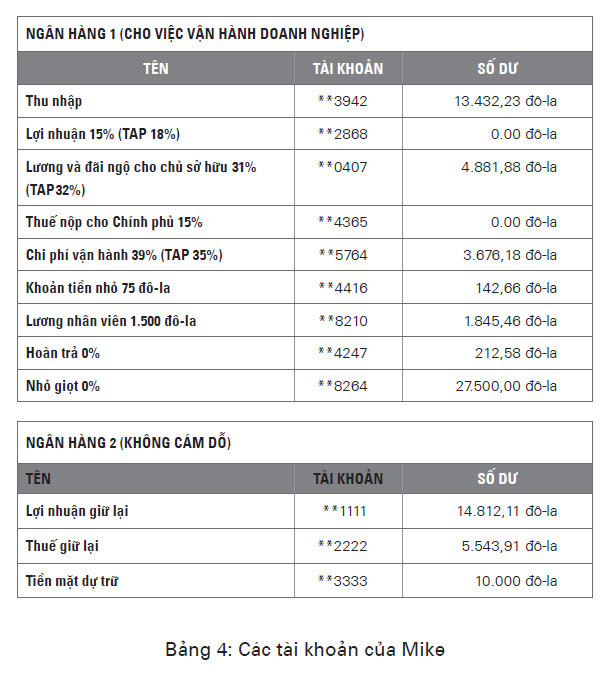 Thiết lập hai tài khoản tiết kiệm mới tại một ngân hàng khác: Chúng tôi sẽ gọi ngân hàng này là Ngân hàng 2. Mục đích ở đây là để loại bỏ sự cám dỗ của việc “vay tiền” từ các tài khoản này. Hai tài khoản đó là: 1. LỢI NHUẬN GIỮ LẠI; 2. THUẾ GIỮ LẠI.