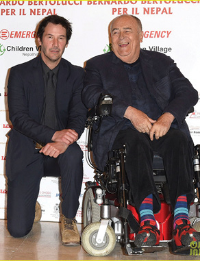Keanu và đạo diễn Bernardo Bertolucci tại buổi chiếu phim gây quỹ từ thiện của bộ phim Little Budha năm 1993