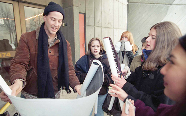 Keanu gặp gỡ người hâm mộ bên ngoài Nhà hát Manitoba (Canada) nơi anh diễn vai Hamlet, tháng 12.1994
