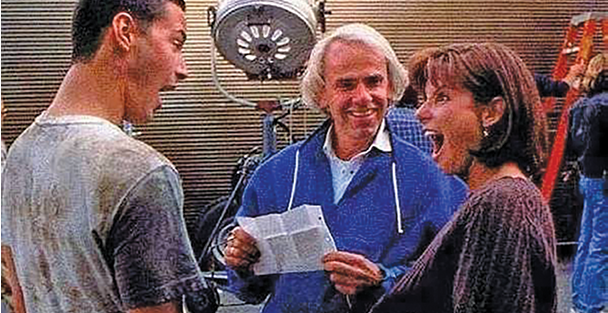 Keanu cùng Sandra Bullock và đạo diễn Jan de Bont trên phim trường Speed