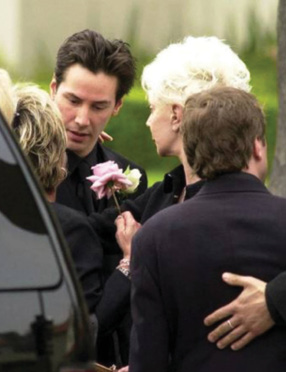 Keanu tại tang lễ của Jennifer Syme năm 2001 Hình từ News Limited