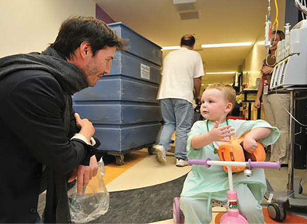 Keanu và bệnh nhi 2 tuổi Ethan Klamm tại Bệnh viện Nhi Miller ngày 15-4-2010. Ethan mắc chứng rối loạn đông máu