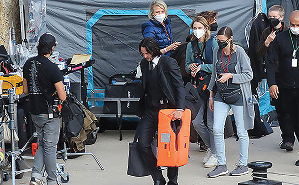 Keanu giúp thu dọn thiết bị tại trường quay John Wick 4